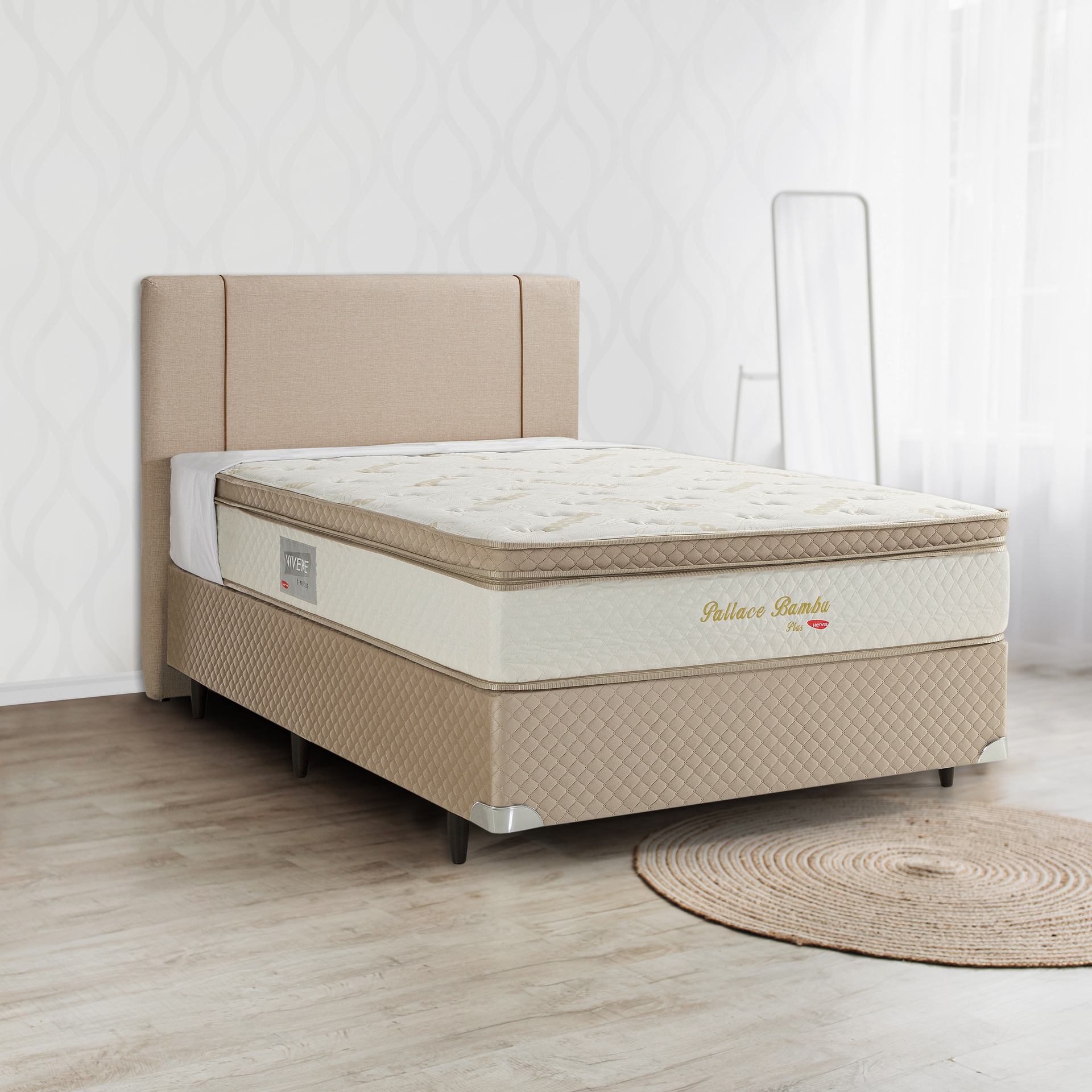 O colchão PALLACE BAMBU PLUS, da Linha Vivere, une conforto, tecnologia e sustentabilidade em um só produto. Com 32 cm de altura, possui Pillow Top em um lado, molas ensacadas individualmente que proporcionam maior independência de movimentos e tecido em malha de bambu, reconhecido por ser naturalmente antibacteriano, macio ao toque e termorregulador.