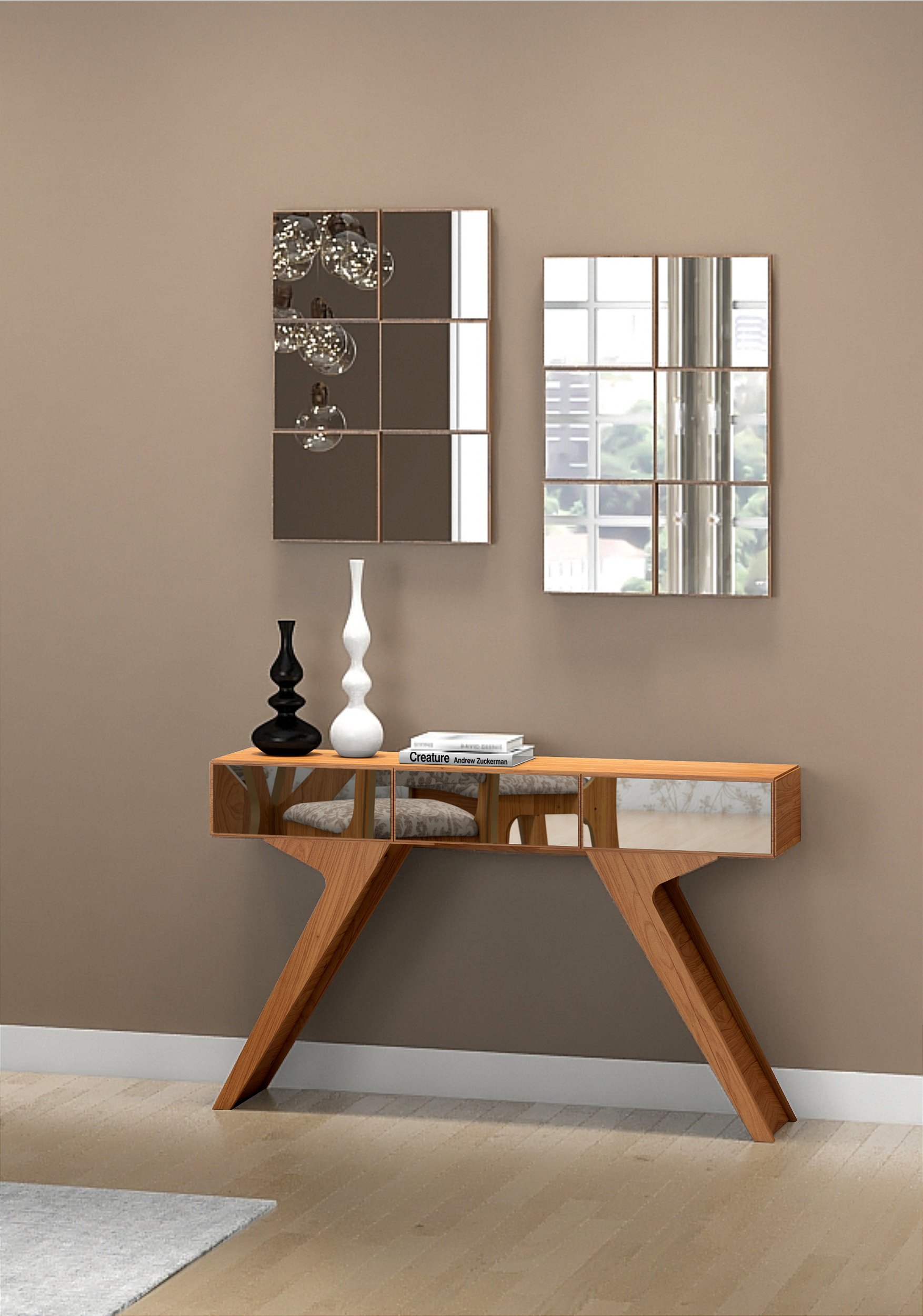 O Painel Espelhado Quadriculado TB85 é uma peça decorativa com estilo contemporâneo e forte apelo visual, ideal para dar profundidade e toque sofisticado a ambientes como sala de estar, jantar ou hall. O efeito 3D do quadriculado + espelho confere dinamismo à parede, enquanto a tonalidade freijó traz calor e harmonia.