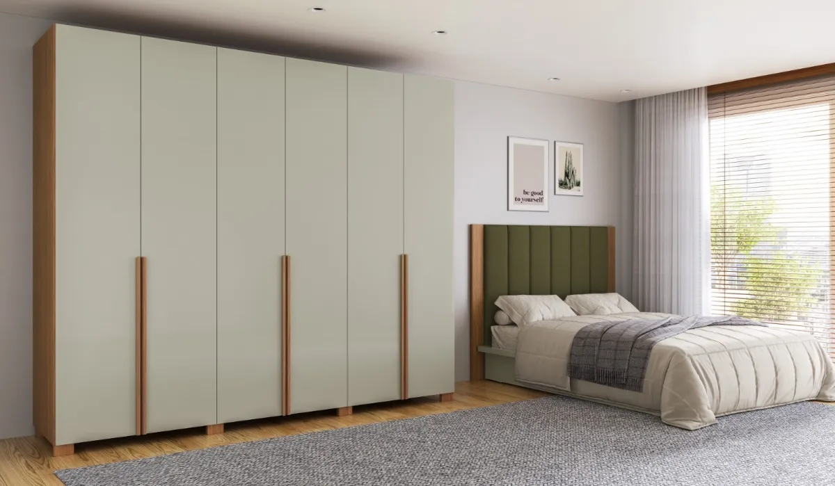 O interior é extremamente completo e bem planejado, com prateleiras espaçosas, cabideiros resistentes e nichos estratégicos, proporcionando organização prática e eficiente. As 6 portas de abrir permitem fácil acesso a todos os compartimentos, otimizando o uso no dia a dia.